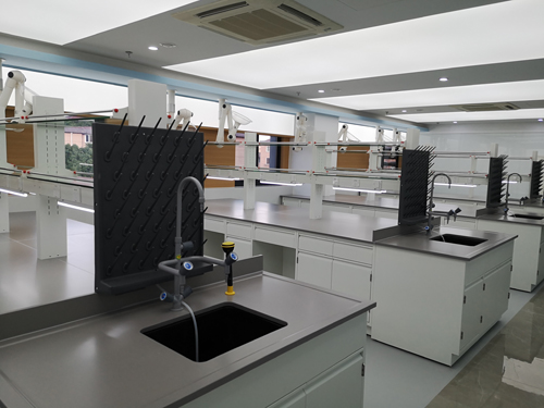 2.全鋼試劑架:采用1.0-1.2mm厚(鍍鋅鋼板/冷軋鋼板/電解鋼板/不銹鋼板),表面經過高溫環氧樹脂靜電粉末噴涂,層板為基材折彎焊接成型,可任意調節位置,可配載中央吊柜等其他特殊儀器裝備功能,能布置氣體管路、電源、水源相關配套設施;多功能線槽具有導線、擋水、多功能應用、整體美觀、使用安全等功能特點。